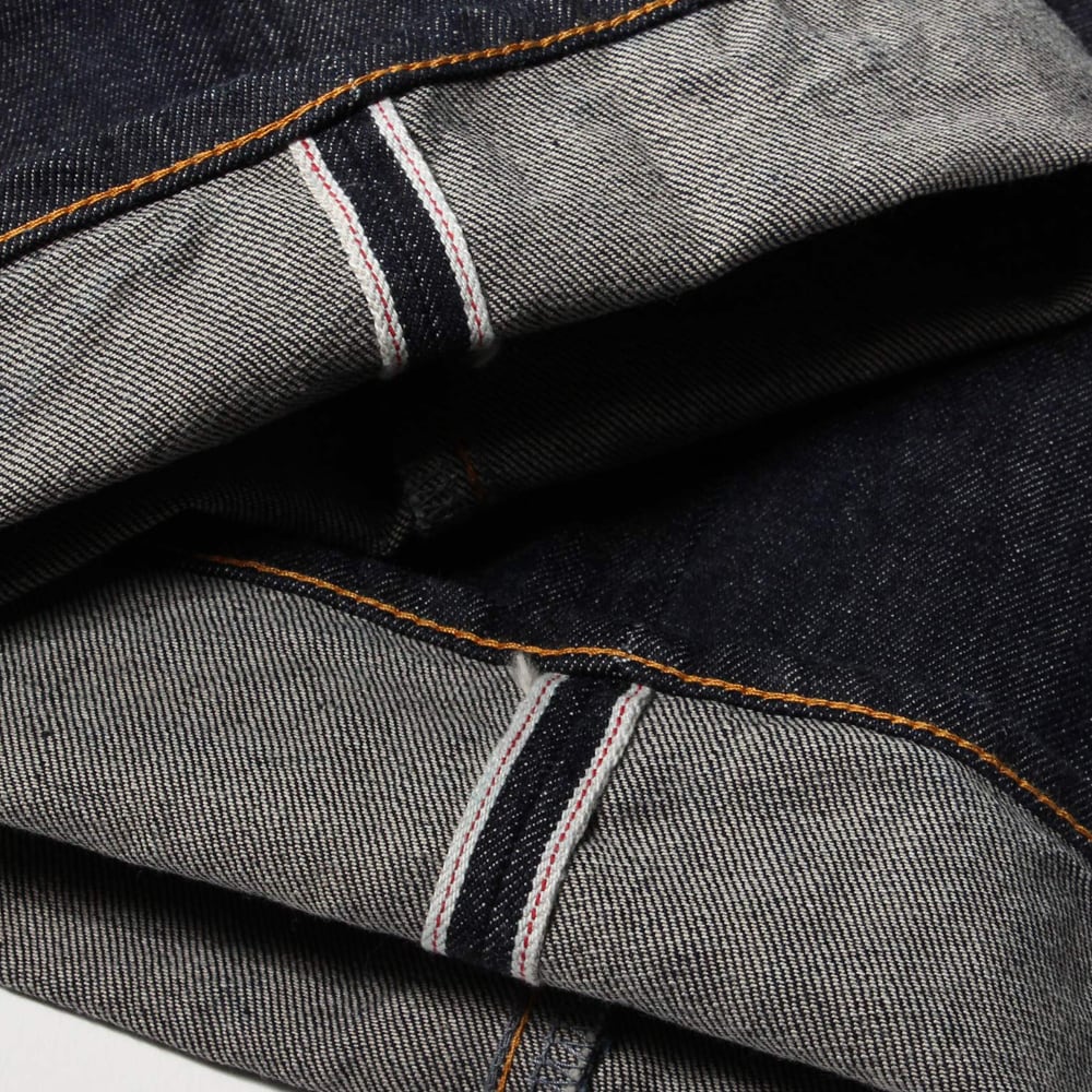50年以上前から稼働する精紡機により生産される自然なムラ糸は、ヴィンテージライクな点落ちや縦落ちを表現します。