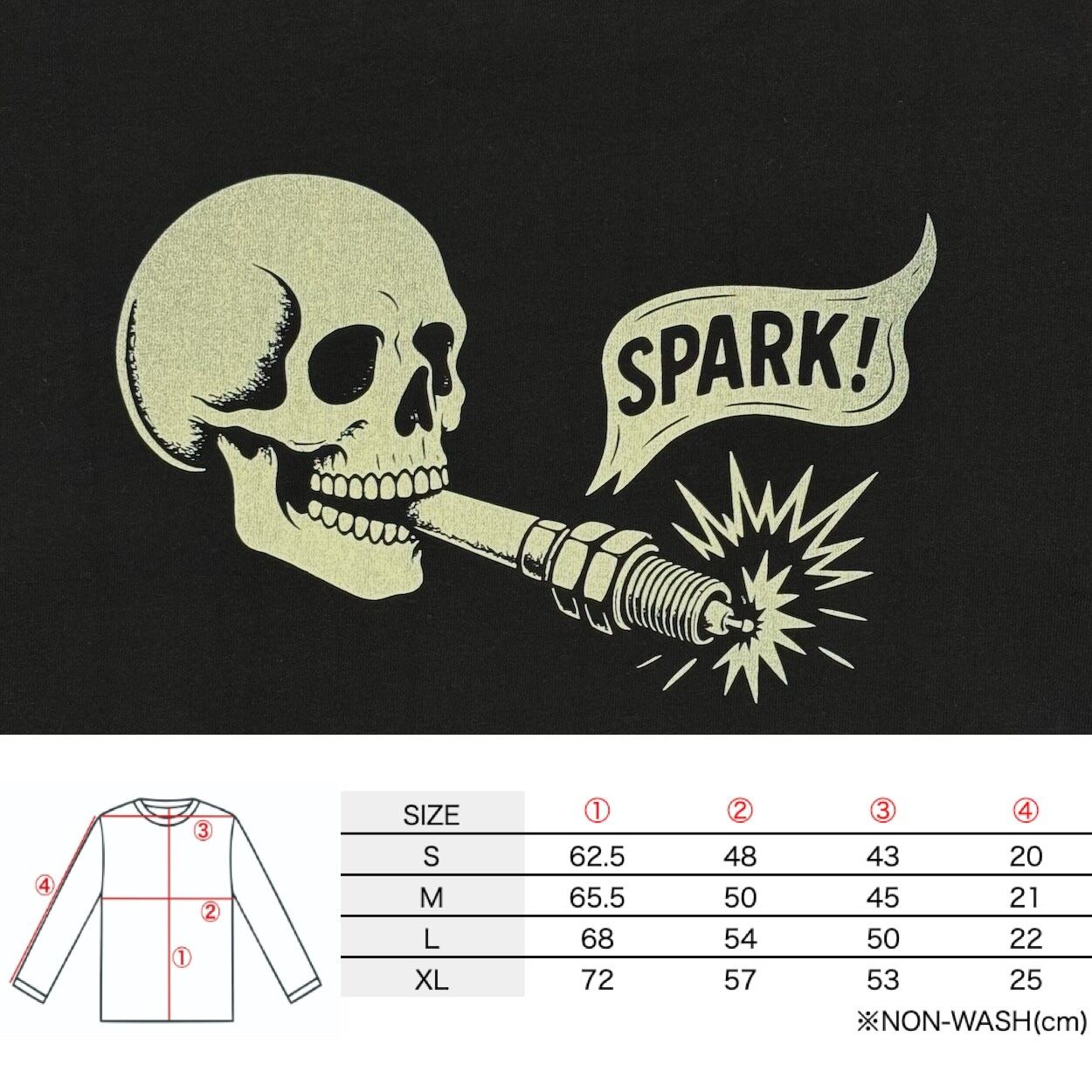 "Spark" SHORT SLEEVE T-SHIRT / BLACK / MONKEY WRENCH WEAR WORKS/ スペシャルヘビーウェイト 8.1oz / 染み込みプリント / 半袖Tシャツ / USコットン | MONKEY WRENCH