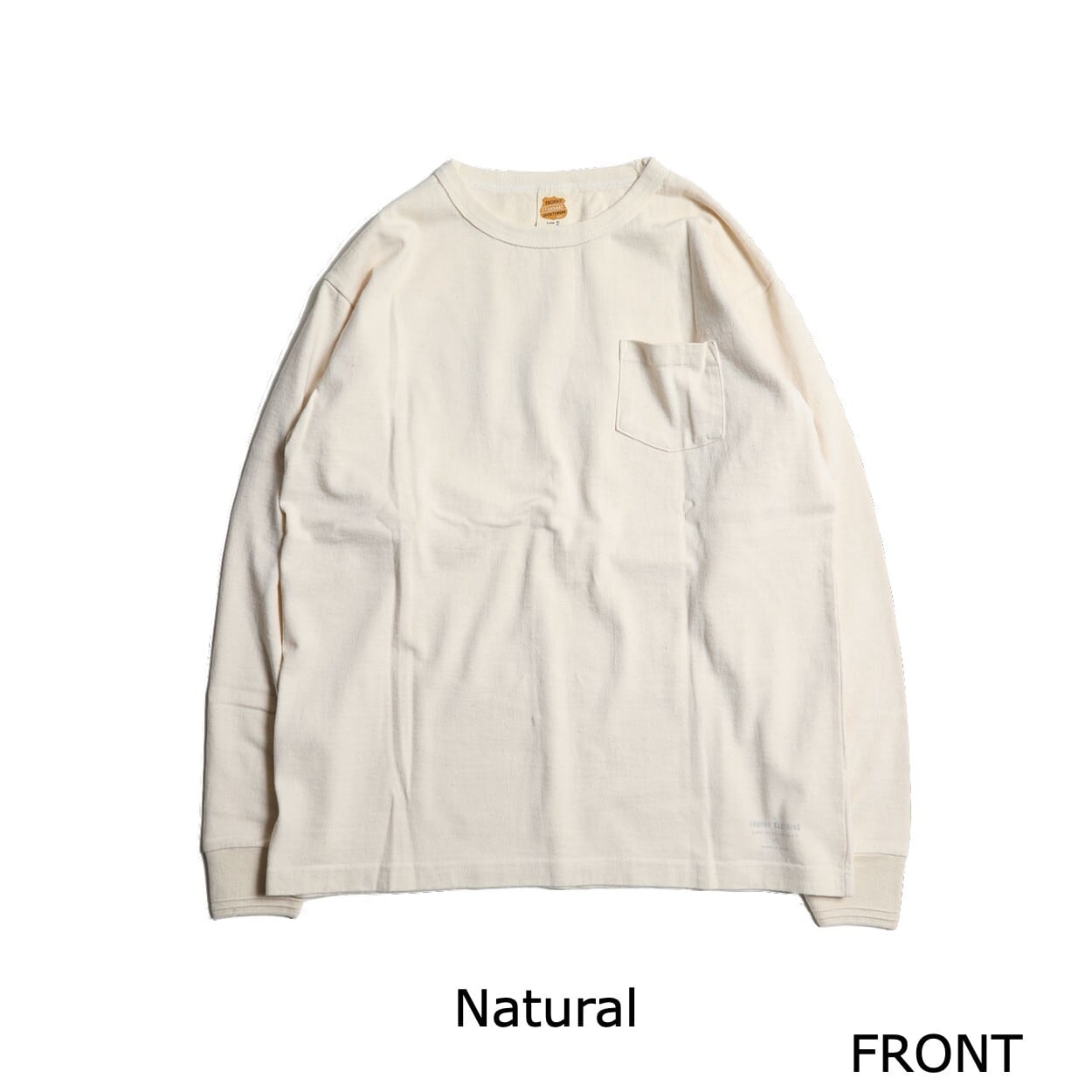 9.5ozオリジナル天竺を使用したポケット付きロングスリーブTシャツ。