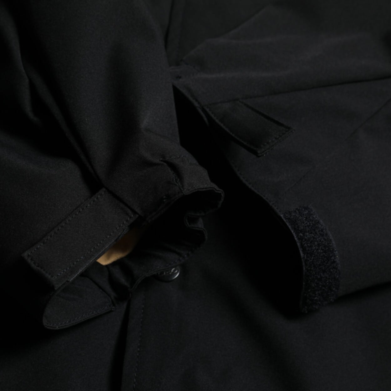 インナーを重ね着できるゆったりとしたシルエットで、折り畳み可能なチンストラップ、物の落下を防ぐ上向きポケット、袖口のテープ、ドローコードの仕様など、ヴィンテージディテールを現代的にアップデート。