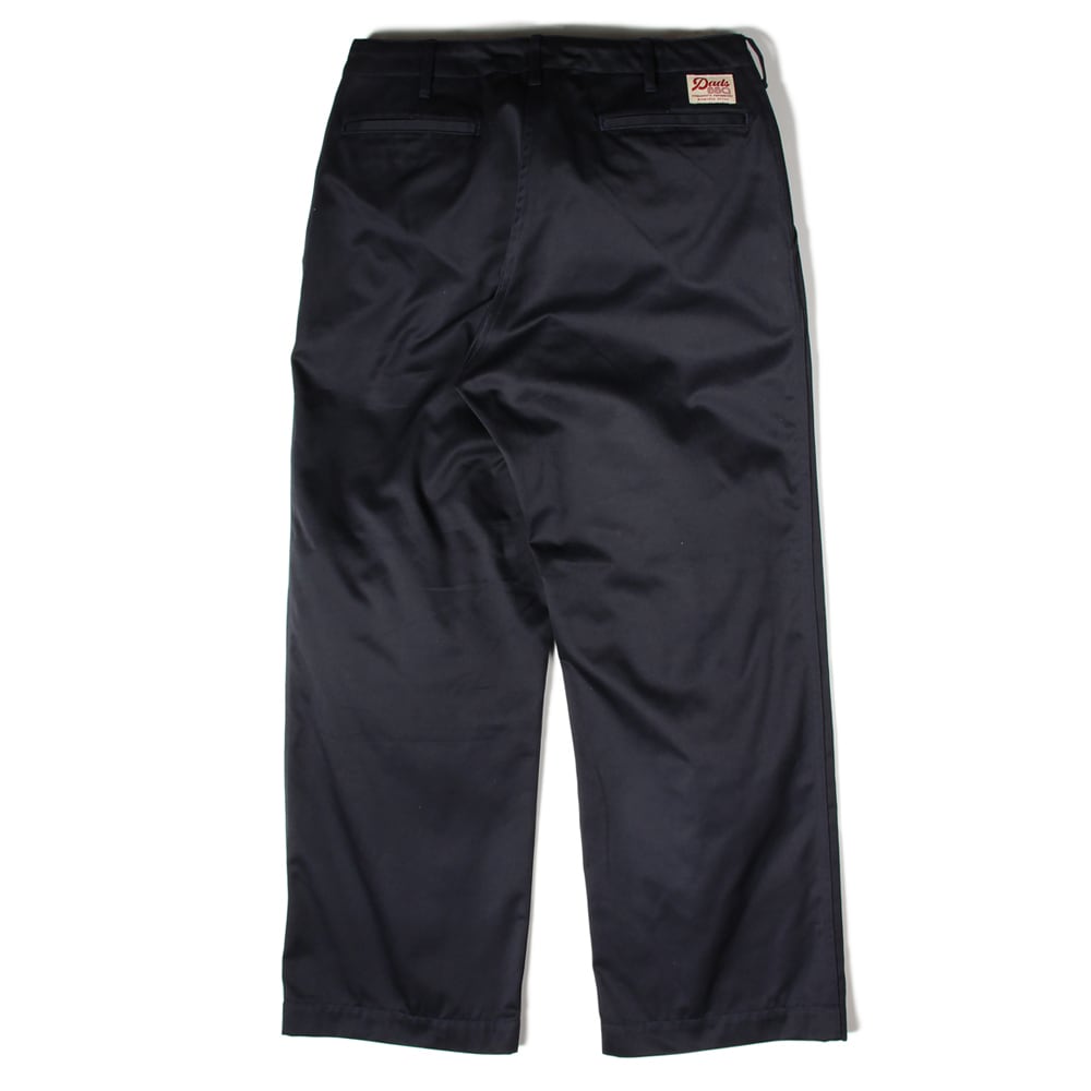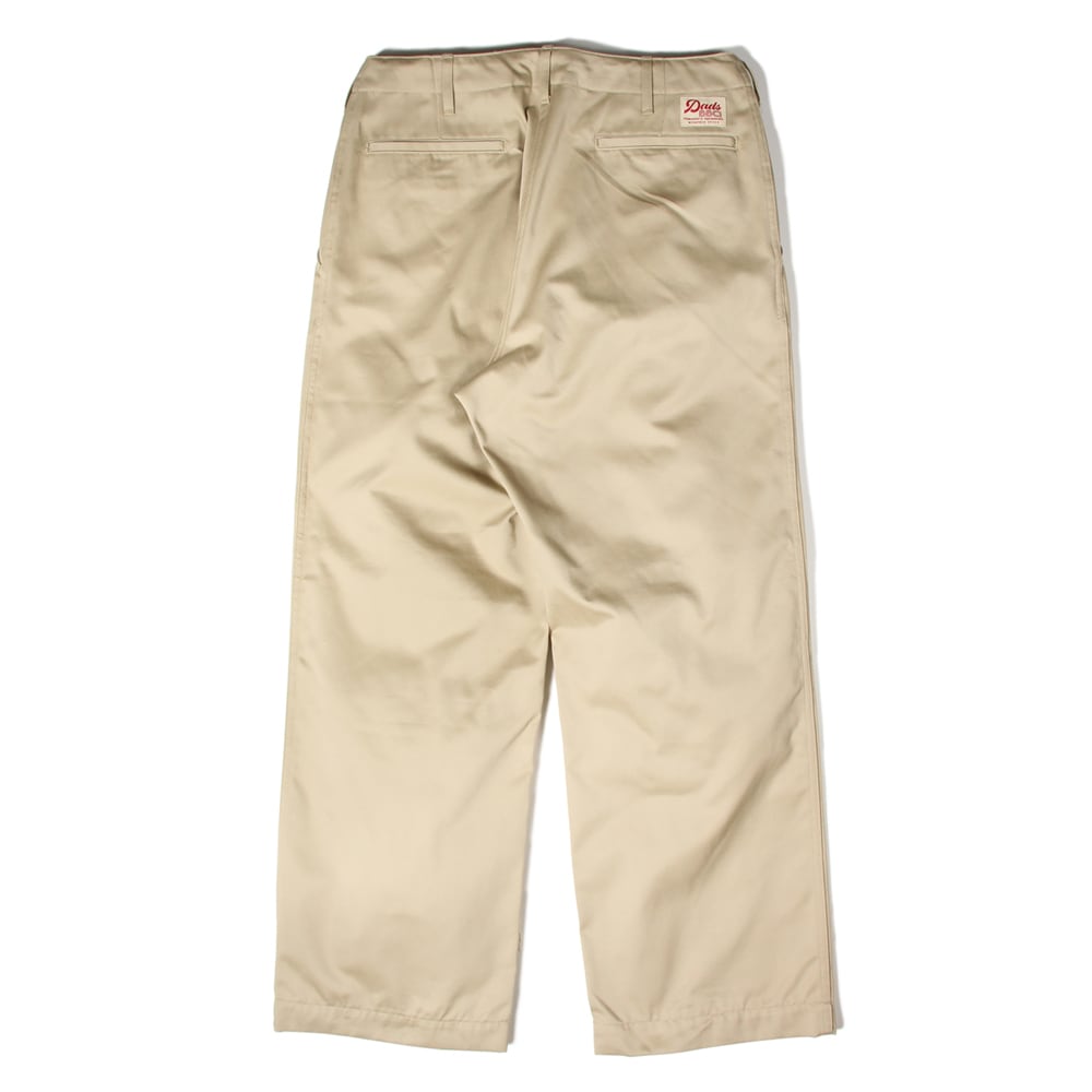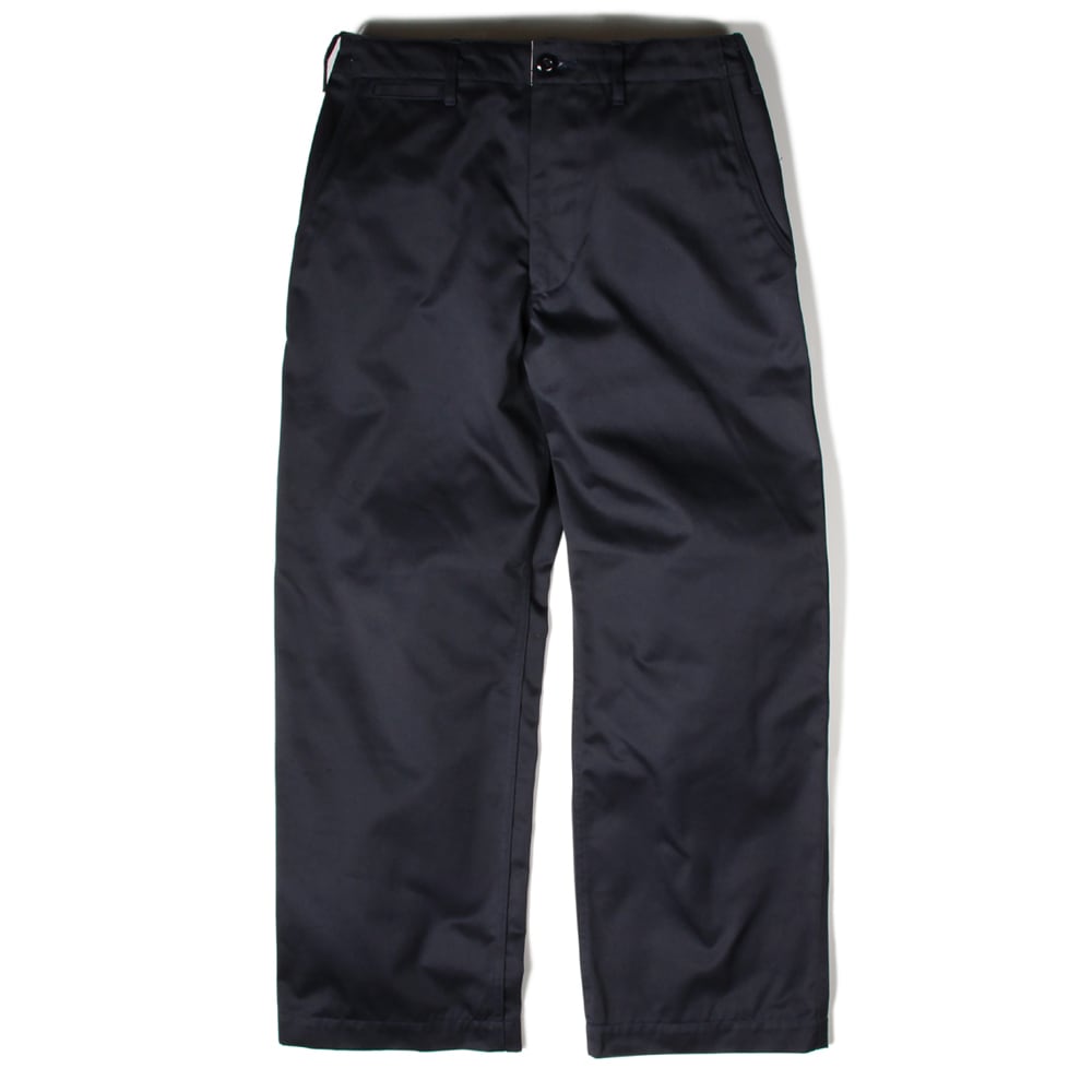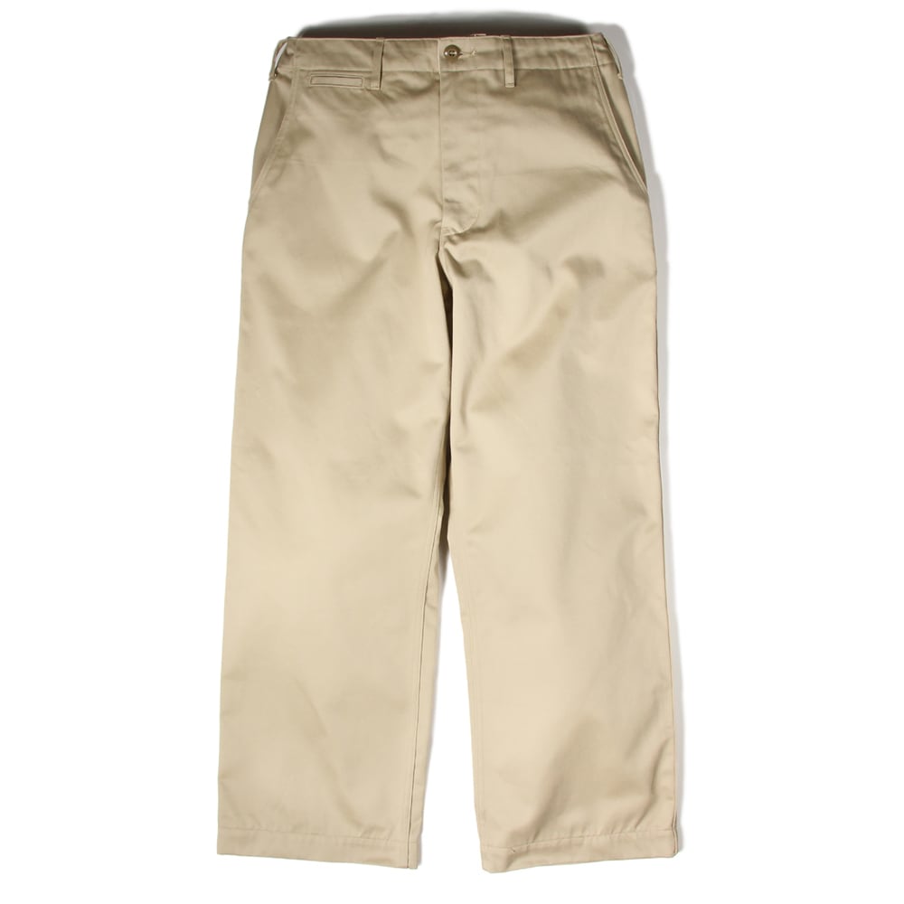 耐久性に優れたT/C素材を採用し、深めの股上とワイドなレッグラインが特徴。がっしりとした佇まいながらも、程よいハリと軽快な穿き心地を兼ね備えています。