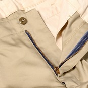 タフでシワになりにくく、程よいハリ感がありながらもコットンの持つナチュラルな風合いを併せ持ったT/Cチノを使用。