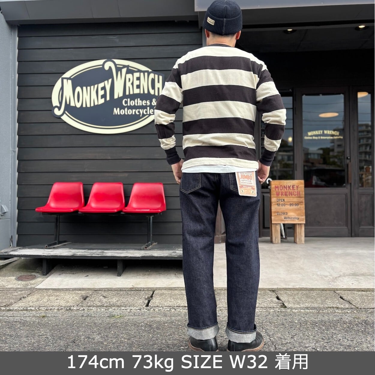 ・スタッフA(174cm 73kg )(2~4枚目): w32でジャストサイズ。