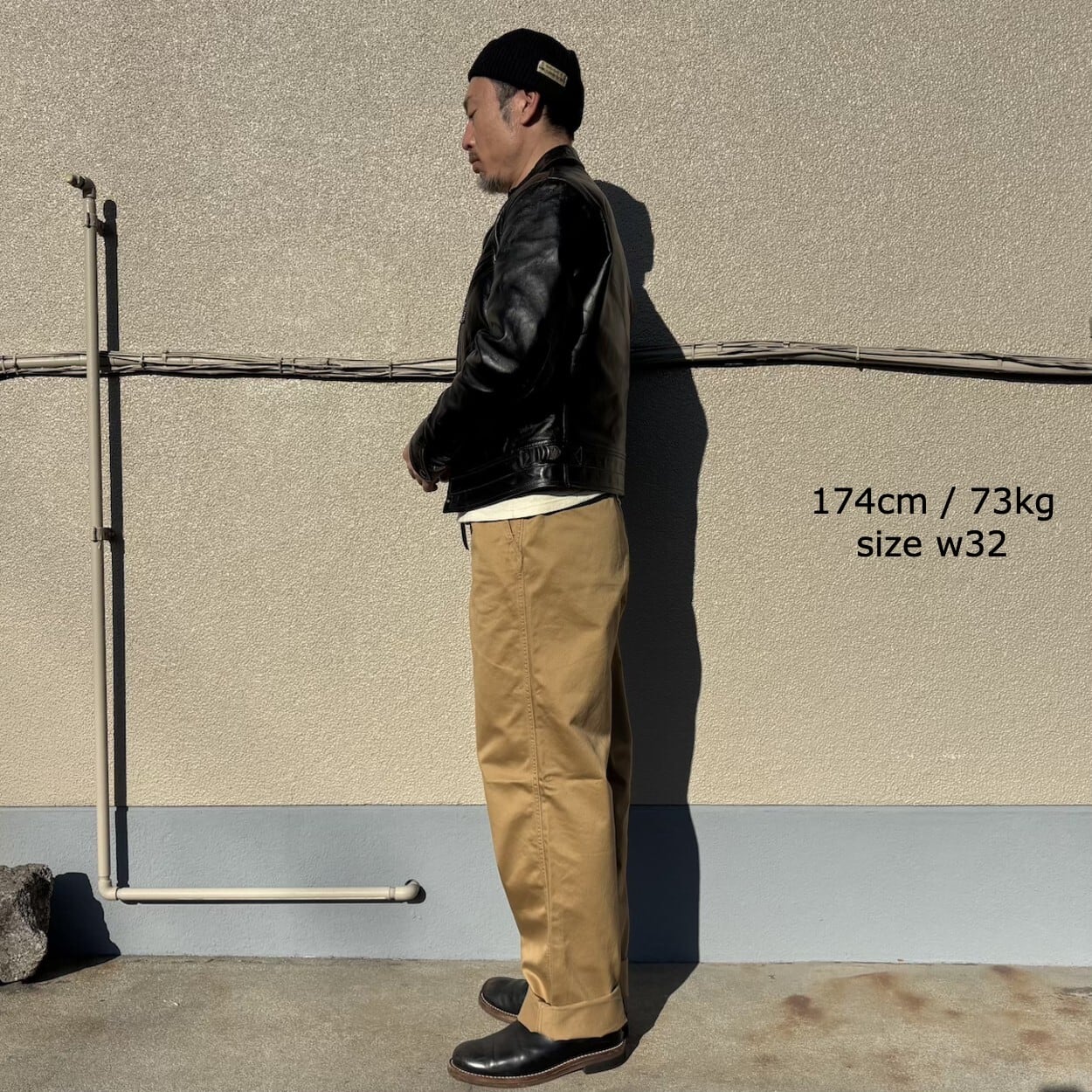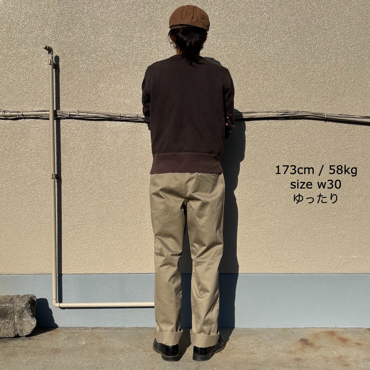 ※写真3~5枚目(KHAKI着用)はウエストにゆとりのある着用感で、ベルトなしだと下がるくらいです。