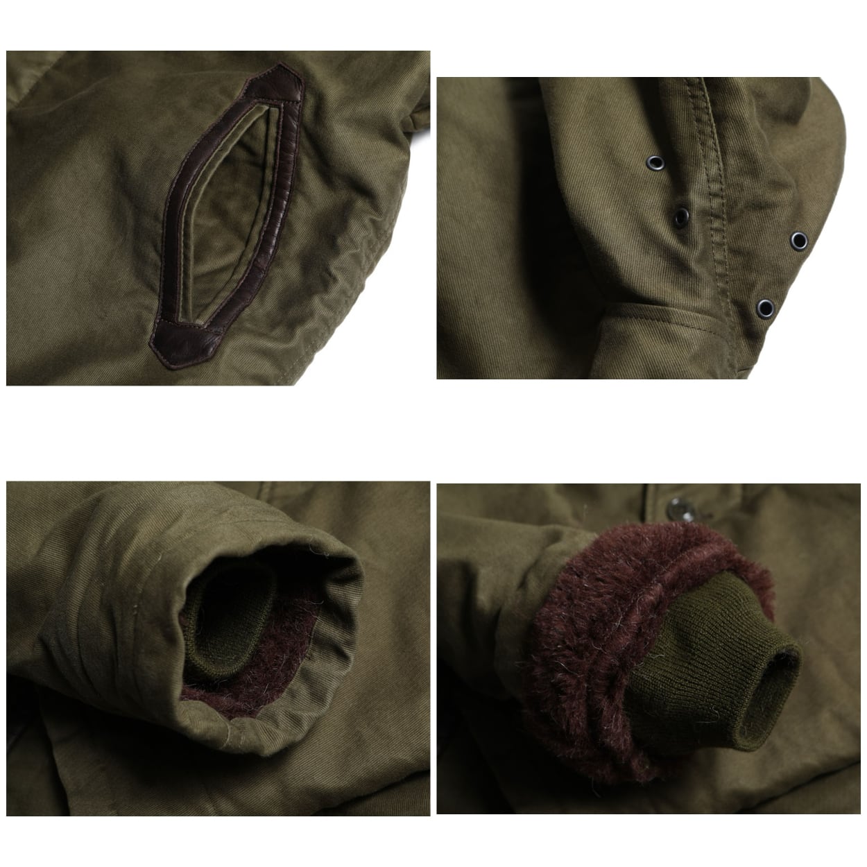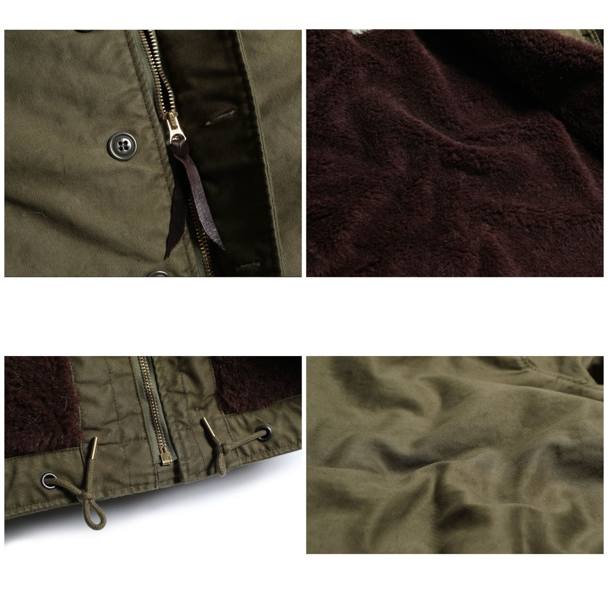 ヴィンテージのN-1デッキジャケットを参考に、ボア、ファーの産地、日本の高野口で製作しております。非常に保温性が高く、毛玉になりづらく、肌あたりも非常に良いです。