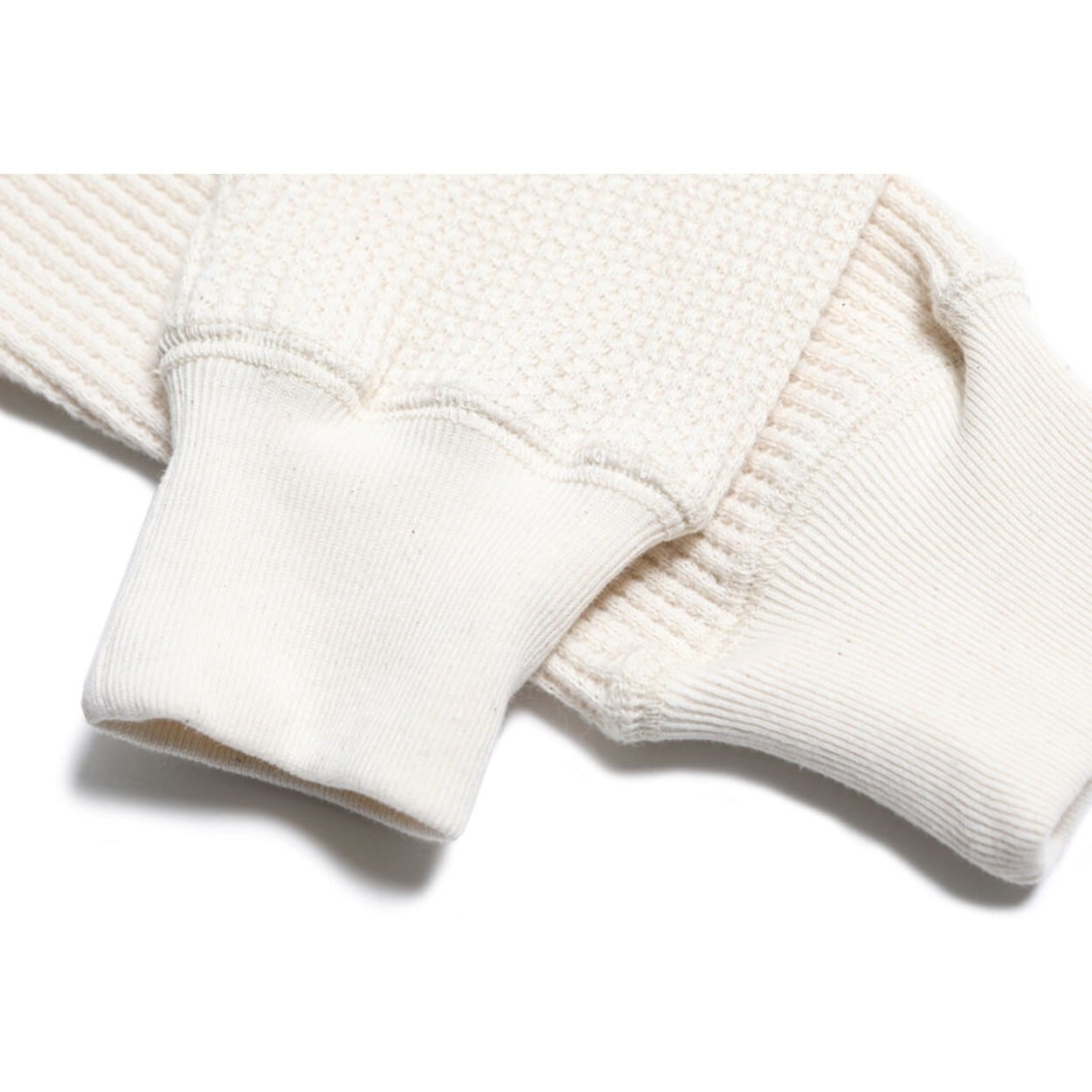 生地は太糸番手で編み立てたサーマル素材。
