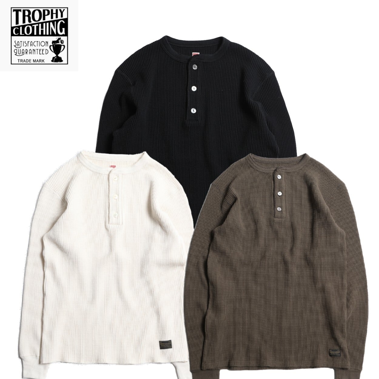 TROPHY CLOTHING / トロフィークロージング / "Heavy Waffle Mil Henley L/S Tee" 3colors / ワッフルニット / ロンT / サーマル / ヘヴィウェイト / アンダーウェア / ヘンリーネック / TE-22 | MONKEY WRENCH