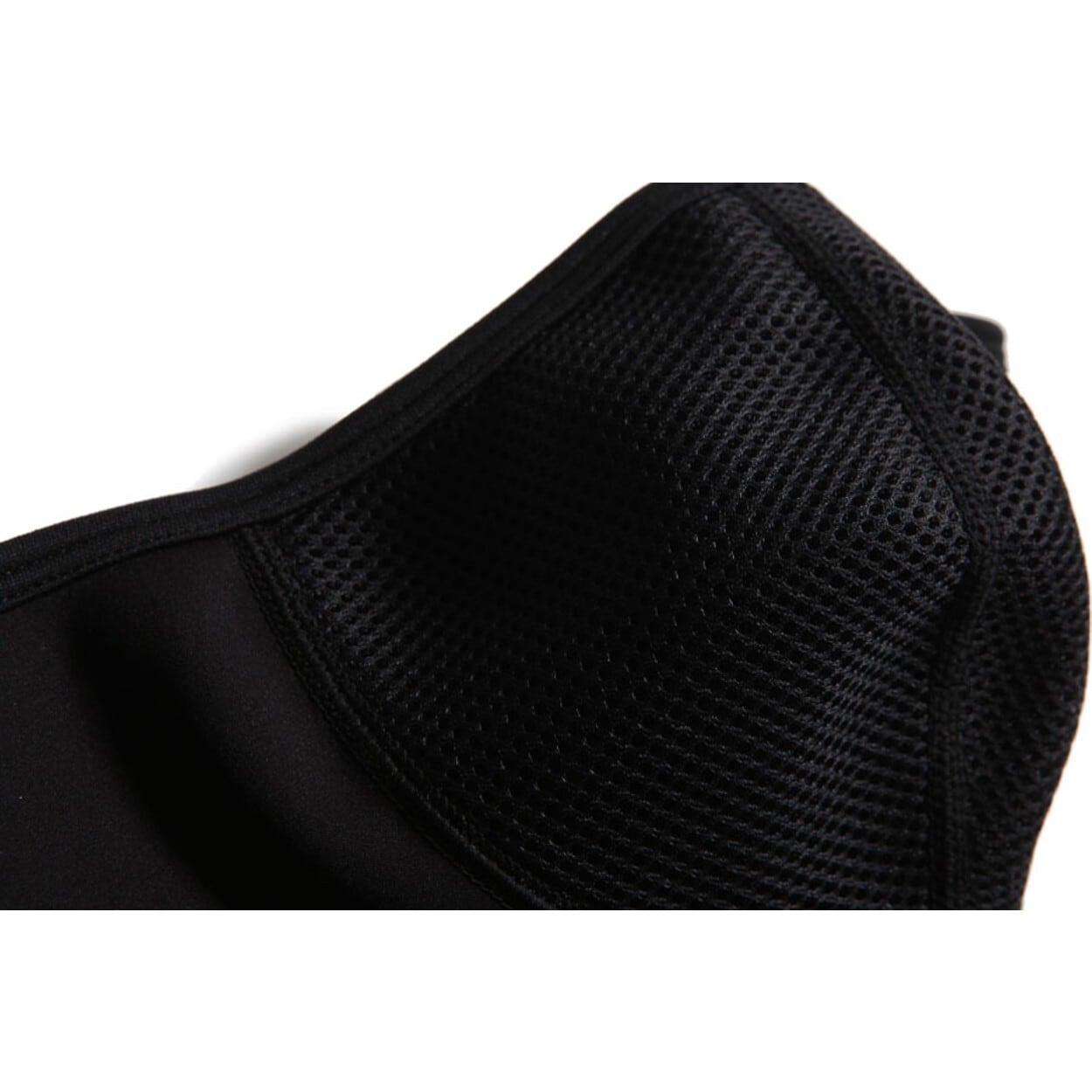 ストレッチ性と防風性を持つアウターシェルと保温性の高いマイクロフリースを張り合わせたボンディング生地を使用し、ノーズ部は立体裁断で通気性を考慮したメッシュで切り替えています。