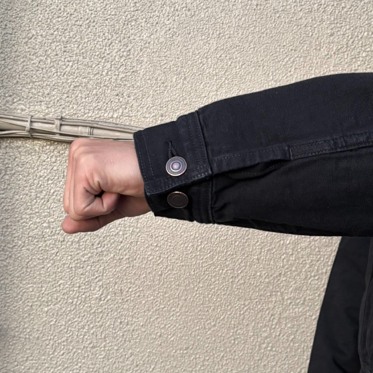 襟にはコーデュロイが使用され、サイドのアジャスター、手の出し入れがしやすい縦形状のジッパーポケット、サングラスを収納する用途で付けられた片玉縁の深めのポケット、フロントポケットはハンドウォーマーとしての役割を果たすポケットとフラップ付きポケットの二重構造などの機能性も考慮したディテールが満載です。