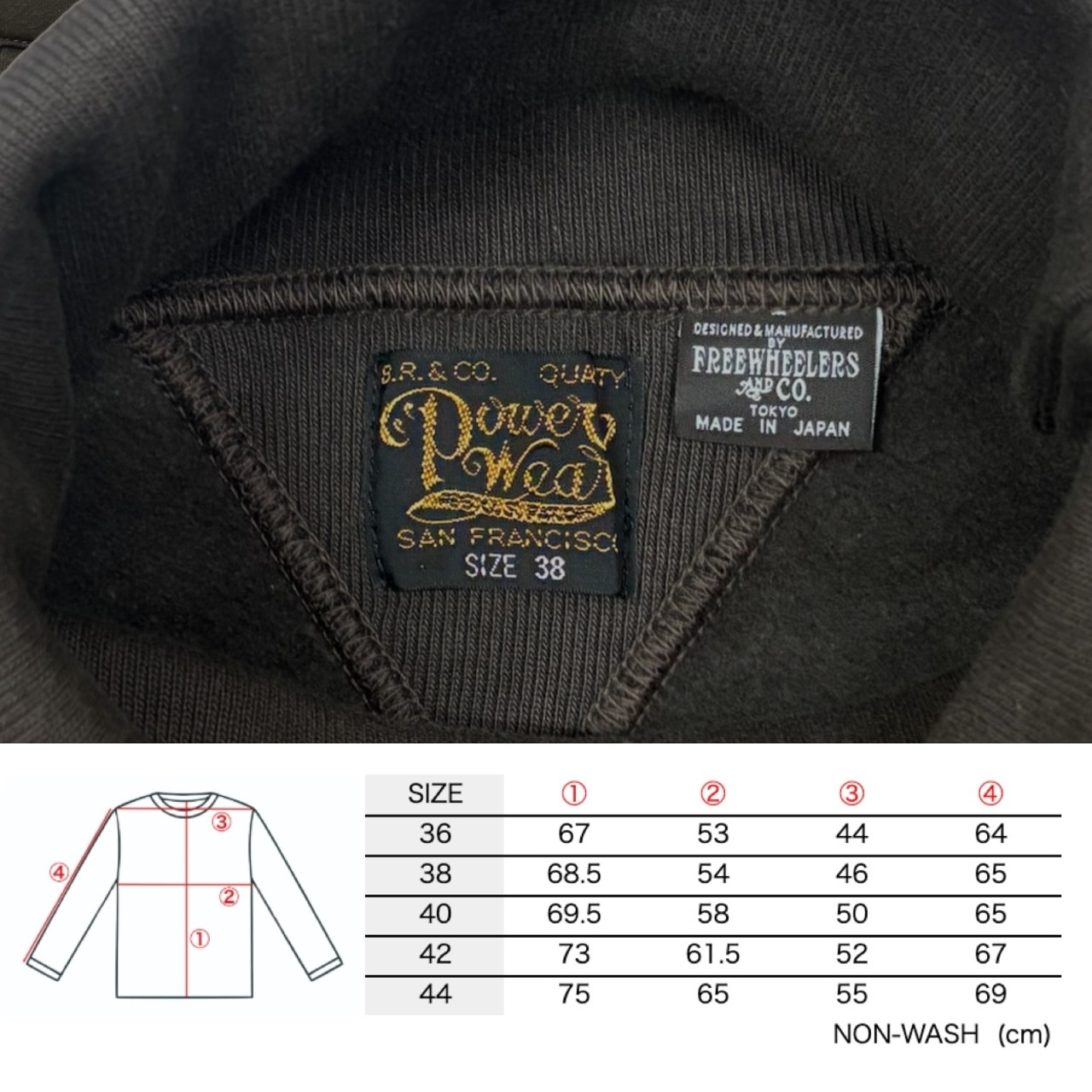 裏は起毛で通常のフリーホイーラーズの「POWER WEAR」のATHLETIC SWEATの2倍の起毛で保温性も抜群。