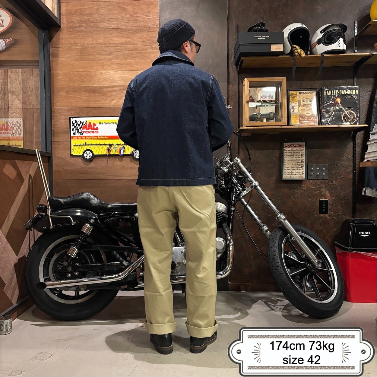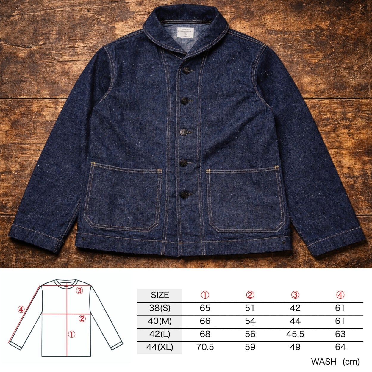 1940年代に米海軍で採用されていたショールカラーデニムカバーオールを忠実に再現したモデル。無骨なデニム地に特徴的なショールカラーを備え、ワークとミリタリーの両面を感じさせる存在感ある一着です。