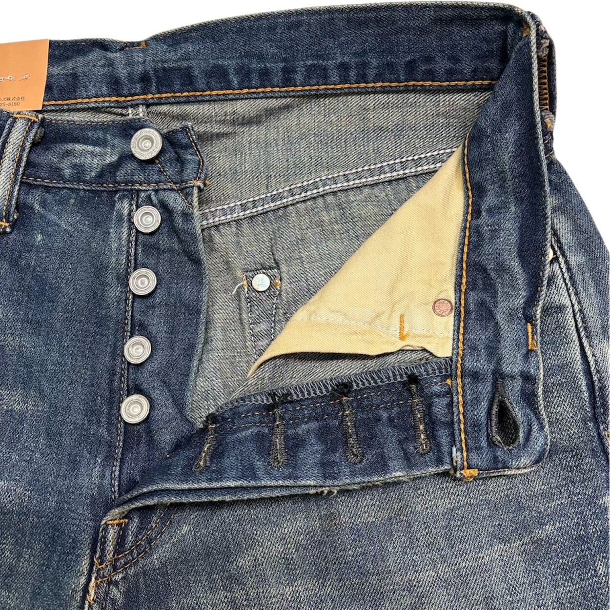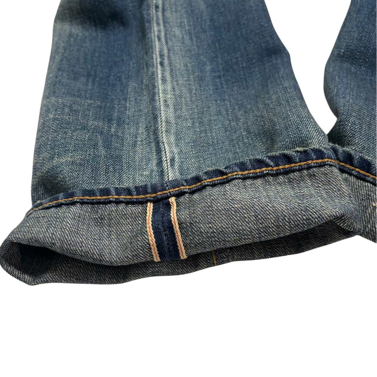 モモ部分やバックポケット、ポケット口など、ジーンズ着用を続けると自然に色落ちする部分をナチュラルに再現。穿き始めから何年も穿き込んだ風合いでお楽しみいただけます。