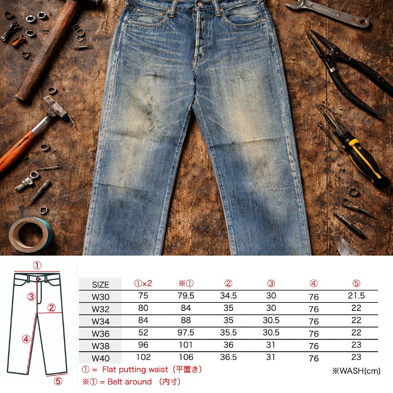 STRASSBURGER&Co. / "12.5oz SALLY FOX SELVEDGE STRAIGHT JEANS AGING" / SB-SF-112PM / エイジング ・ダメージ / デニムジーンズ / ボタンフライ / 日本製 | MONKEY WRENCH