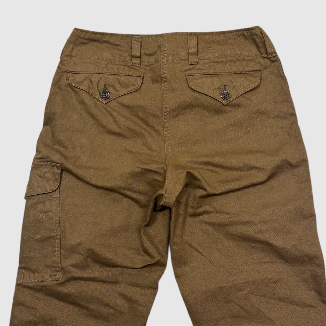 ディティールはフロント左右にスラントポケット、ヒップにはフラップポケット。左腿部分にはカーゴポケットが配置されています。