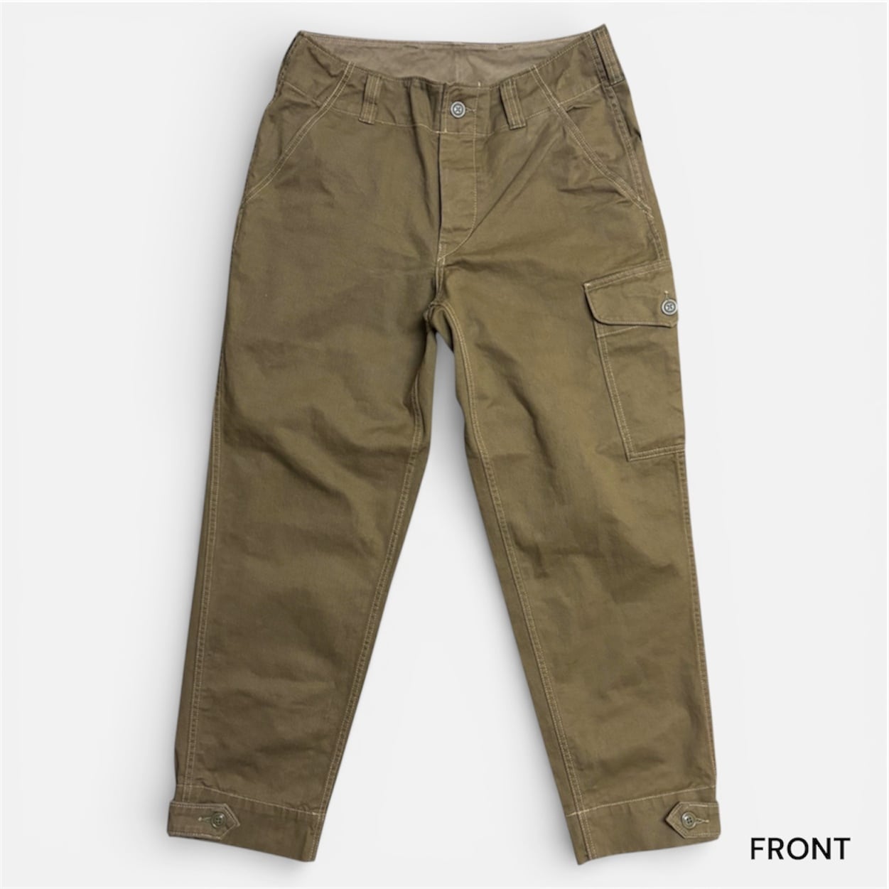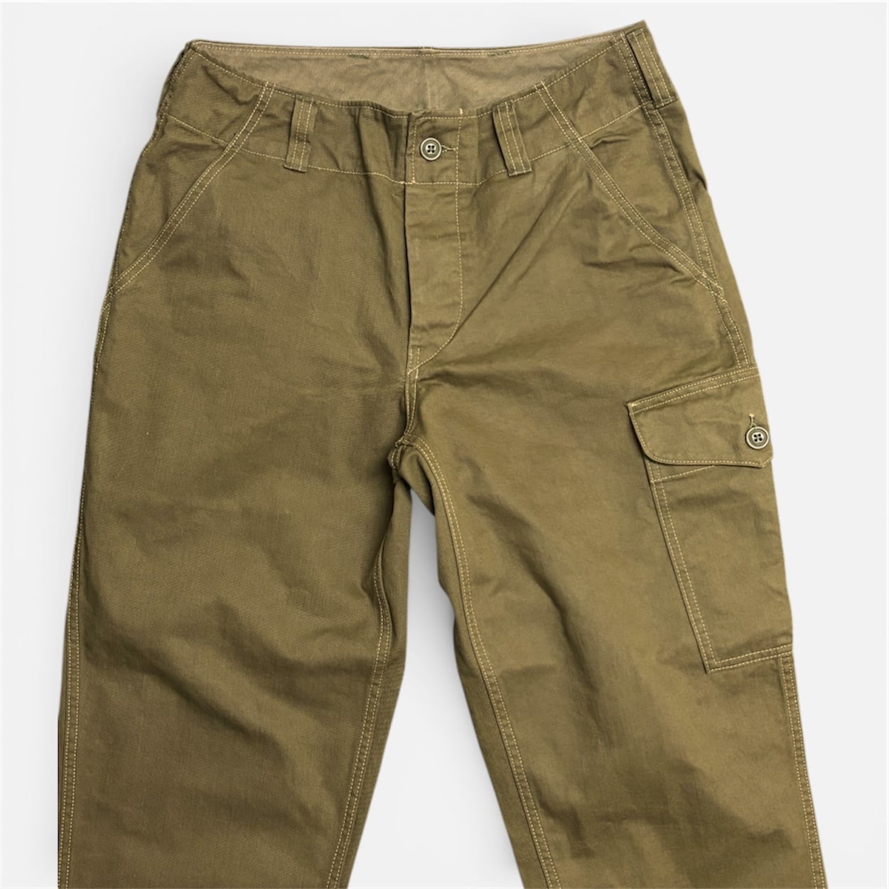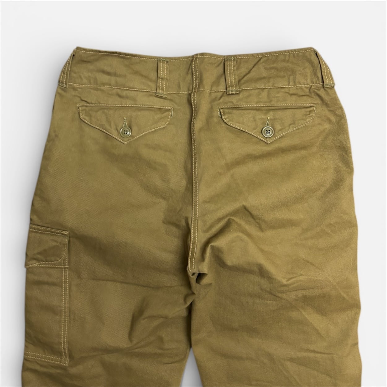 ディティールはフロント左右にスラントポケット、ヒップにはフラップポケット。左腿部分にはカーゴポケットが配置されています。