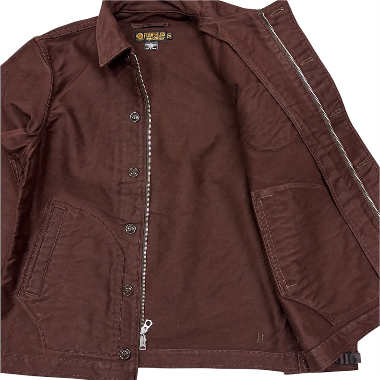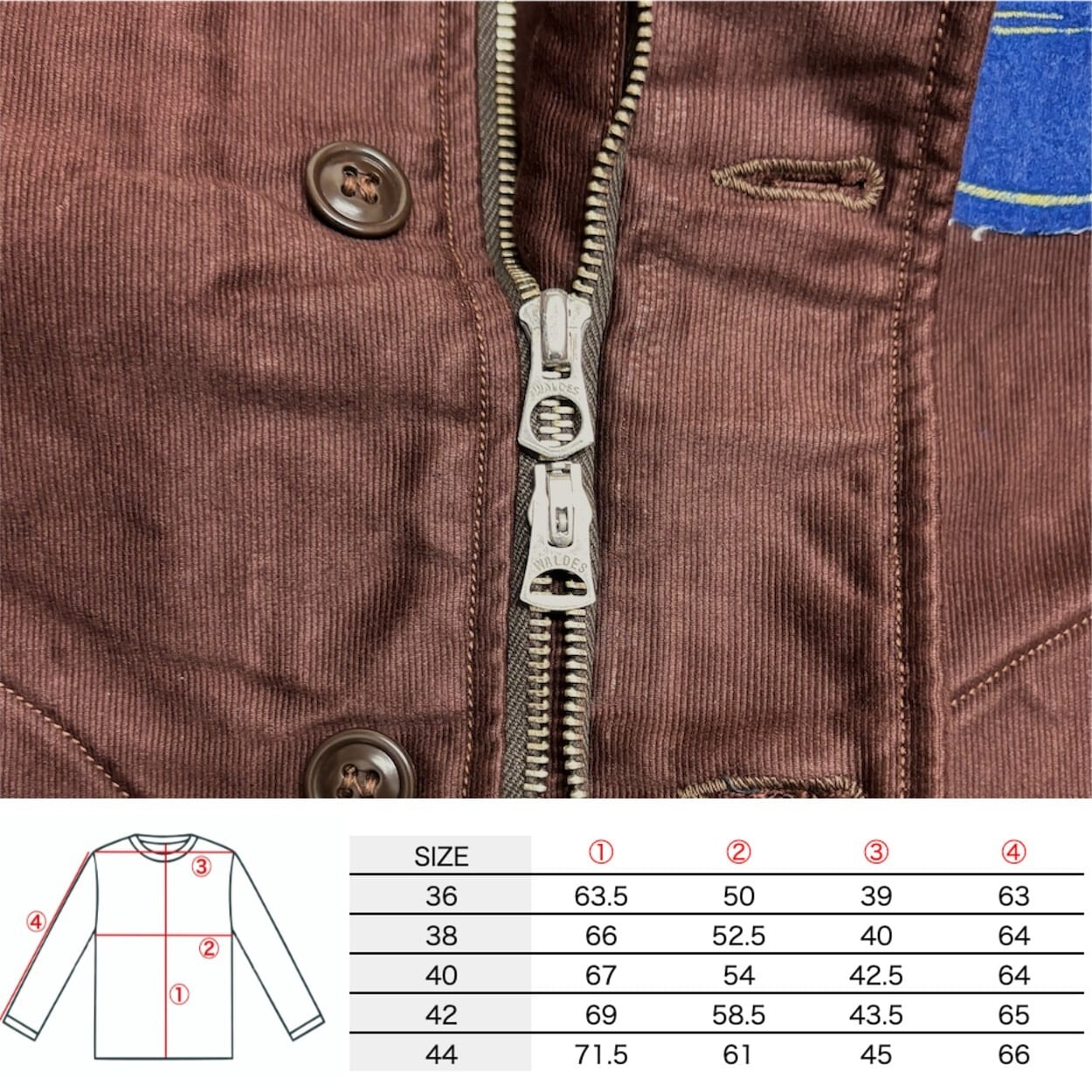 襟に入ったダーツ状の補強ステッチやWALDESジップなどヴィンテージライクなディティールも満載。