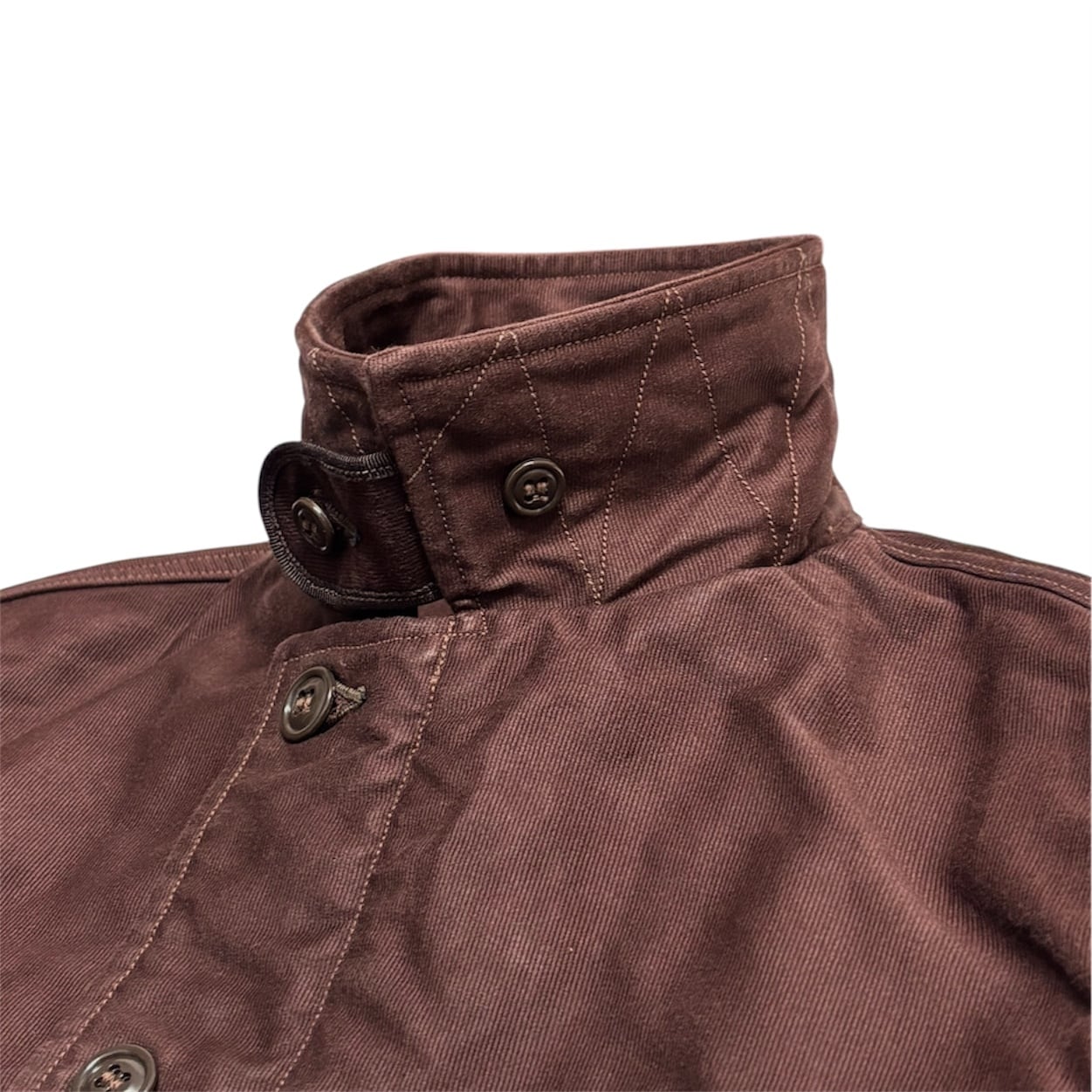 小さめの尿素ボタンとジッパーの比翼仕立て。