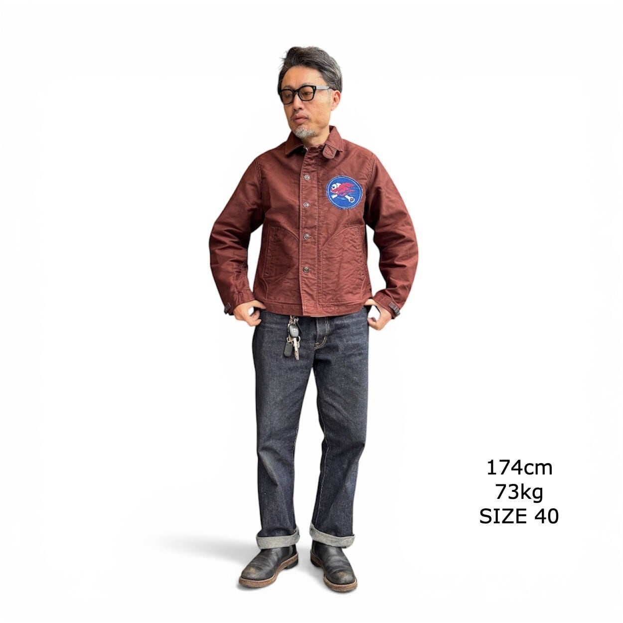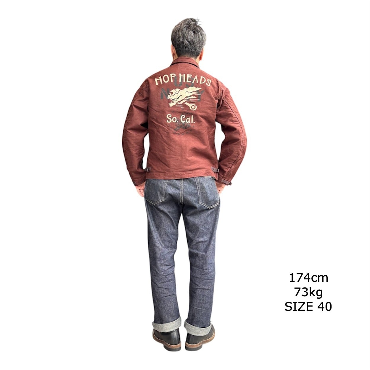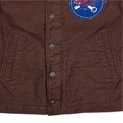 "DECK WORKER JACKEAT"にU.S.NAVYの部隊"SEA BEES"に所属していた軍人がカスタムを施し、退役後に熱中したホットロッドをモチーフにカスタムしたというストーリー。