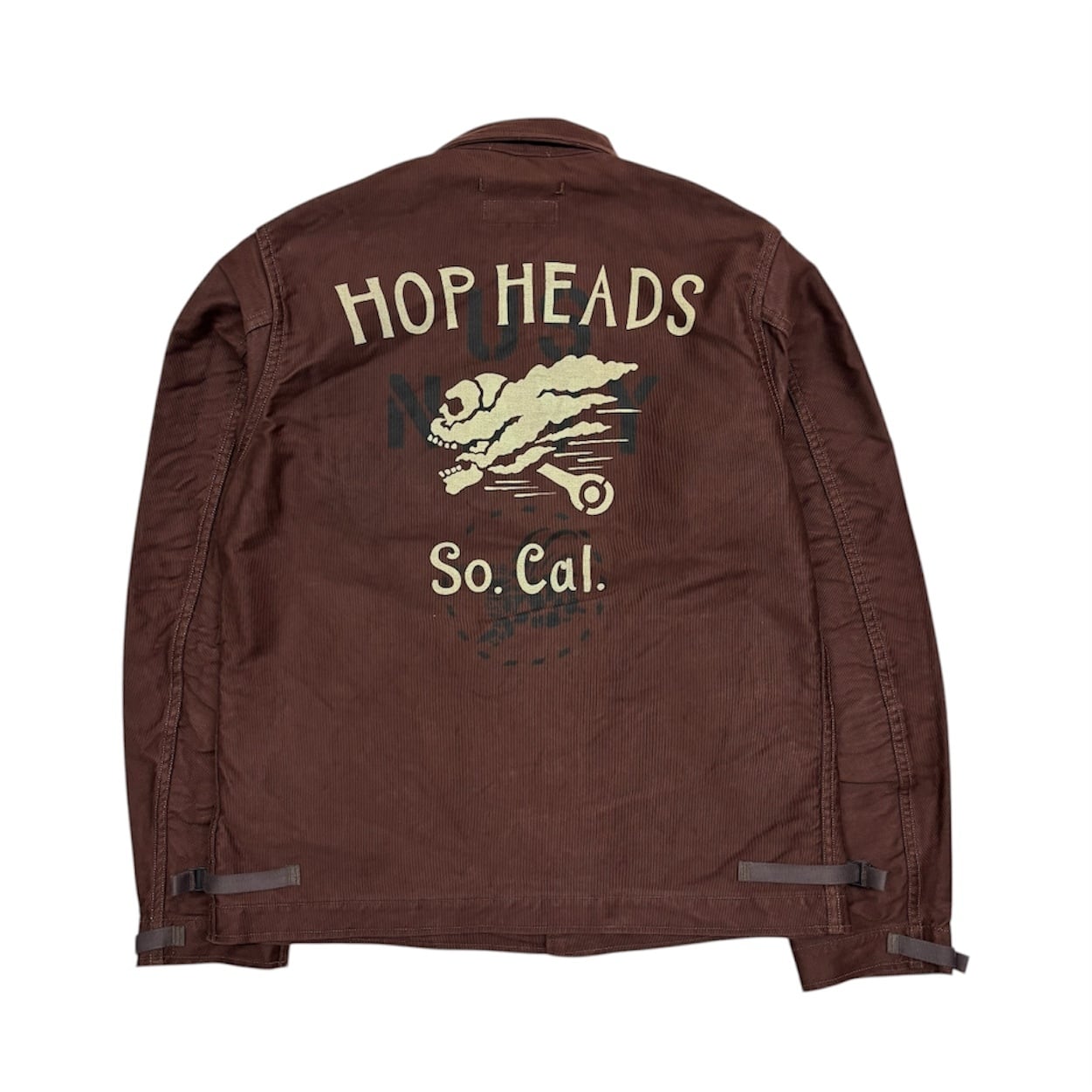 胸にはミリタリーテイストのフェルトワッペン、バックは"US NAVY"とSEA BEESのマークが染み込みプリント"HOP HEADS" , "So Cal"とイラストが割れラバープリントにて施されています。