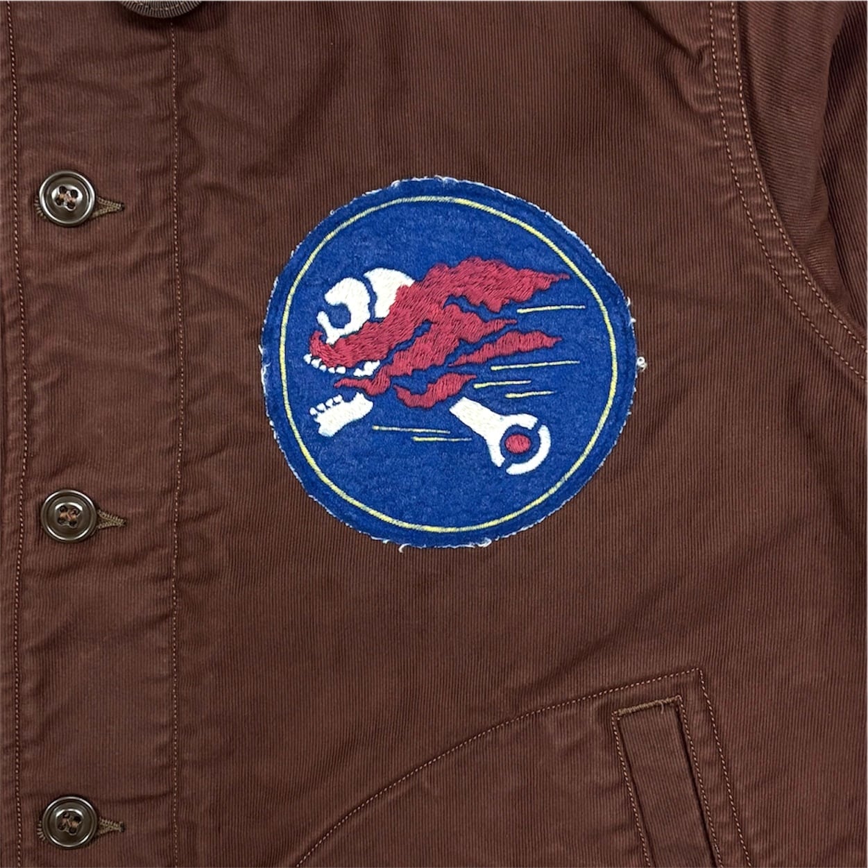 1940-50年代のU.S.NAVY N-1デッキジャケットがベースで、1枚仕立ての春夏版デッキジャケット。