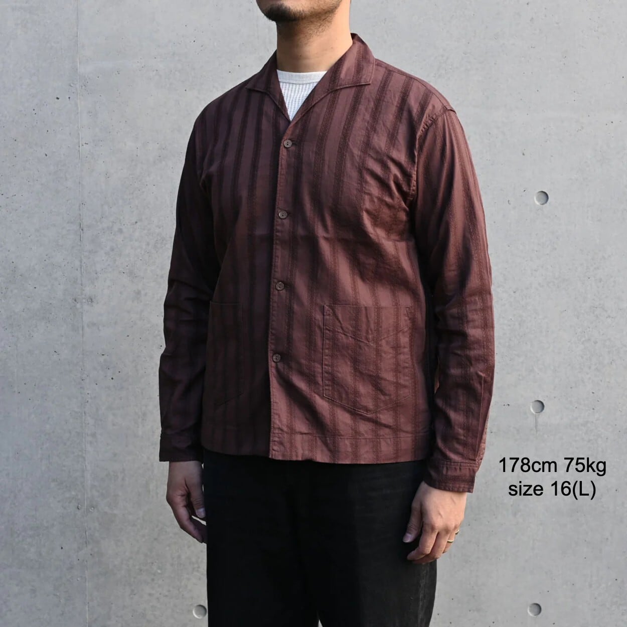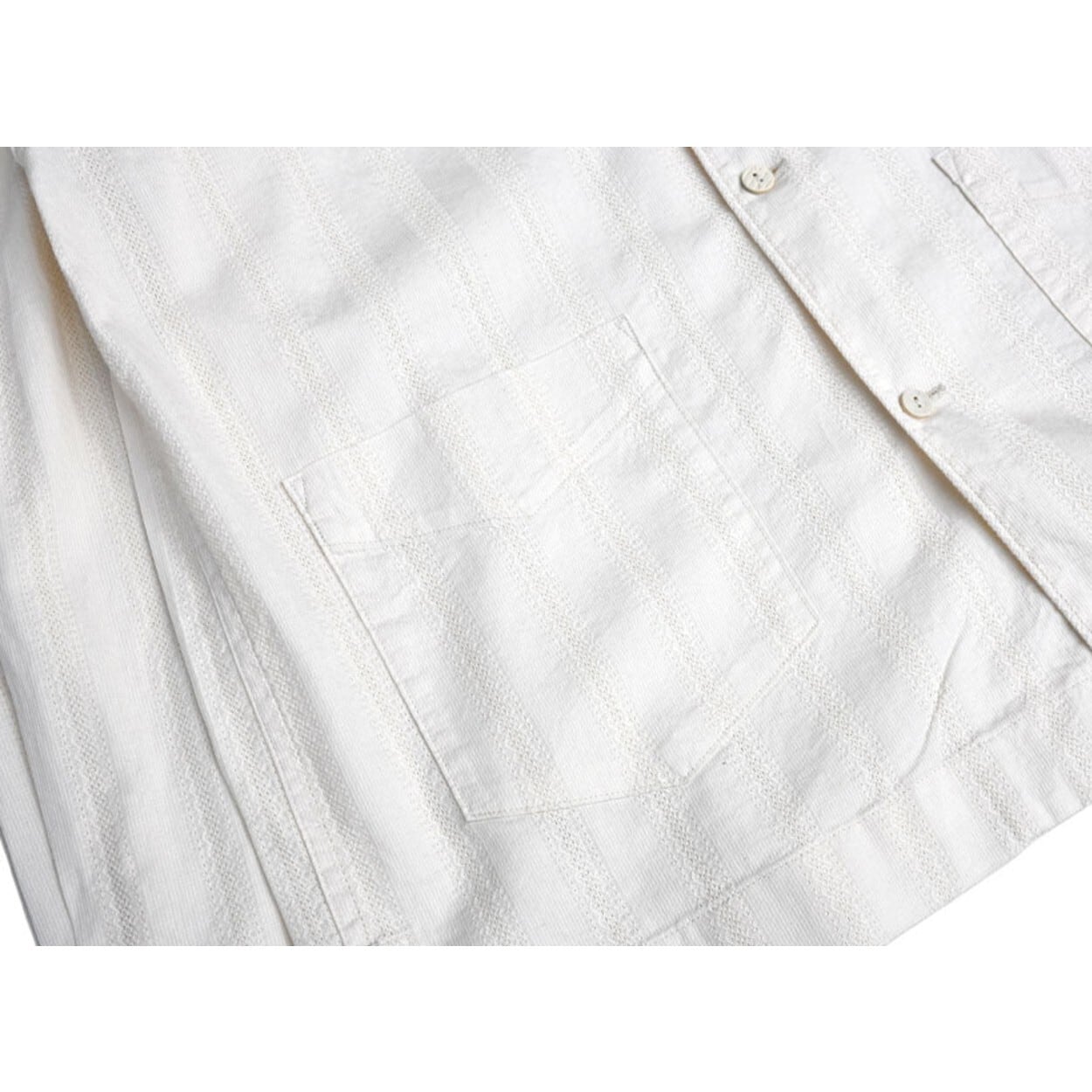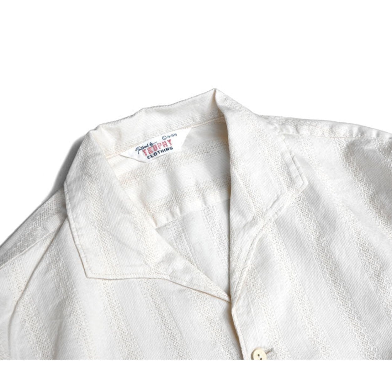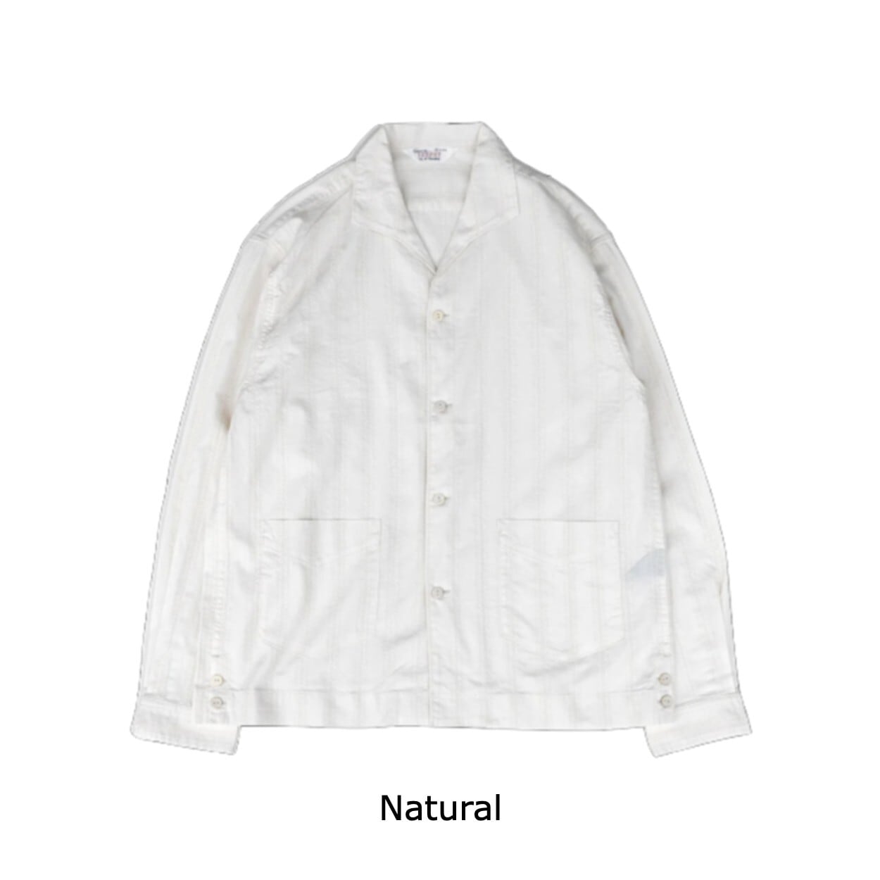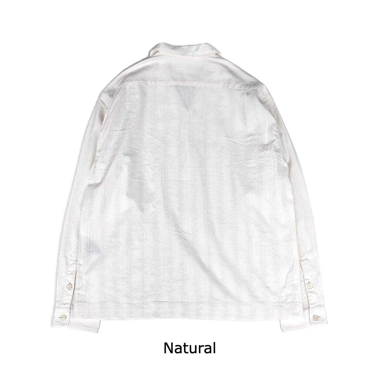 ウイング形状に開いたイタリアンカラー、ウエストポケット、ココナッツボタン、裾のあき等、このシャツならではのディテールが特徴です。