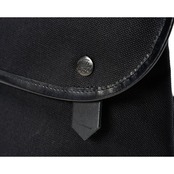 グローブを装着したままでも開閉しやすいレザーフラップと刻印入り四つ割れダールメッキスナップの組み合わせです。