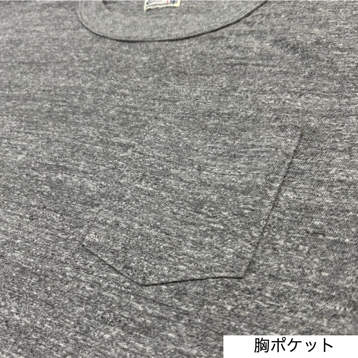 ボディは丸胴、袖と裾はシングルステッチで仕上げられ、襟はバインダーネックで二本針による縫製でヴィンテージ同様に細すぎず太すぎないネック巾などヴィンテージ感満載のディテール。