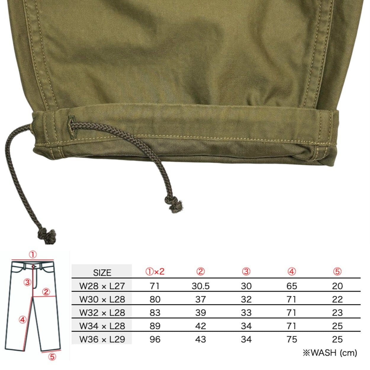 ヴィンテージよりも少しすっきりしつつも程よい太さのあるシルエットで、裾のドローコードでシルエットを変えて楽しめます。